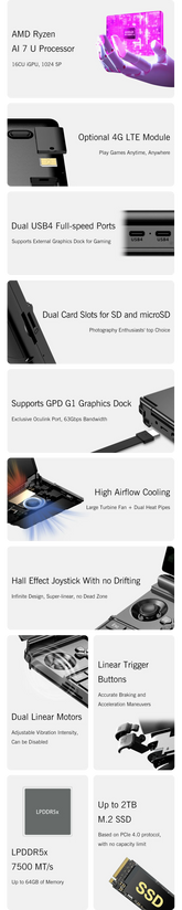 GPD WIN Max 2 2025 10.1 Inch AMD AI 9 HX 370/8840U Windows11 Gaming PC Laptop Notebook Portable Game Computer 64GB RAM 2TB Nvme