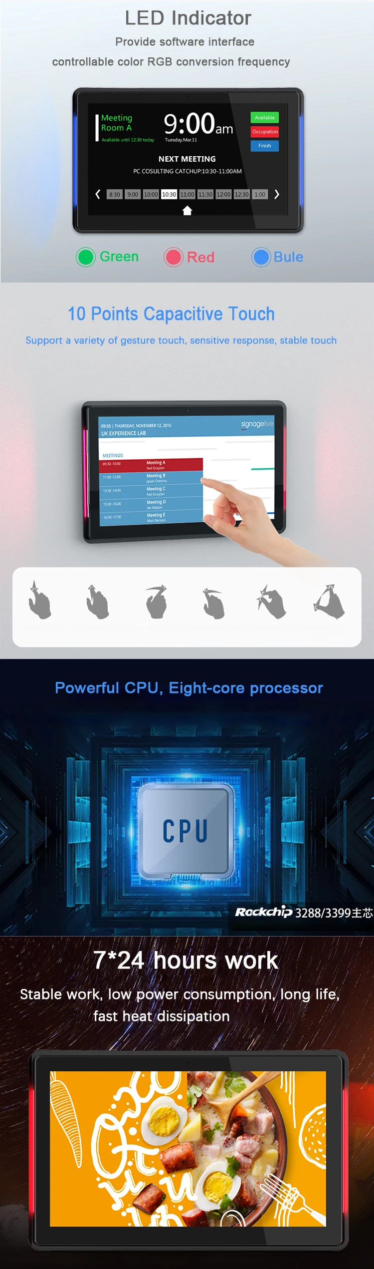 Tablet Android 15.6 Inch 1920x1080 Meeting Room Wall Mounted Android Tablet with Led Light Bar POE 4G NFC RFID